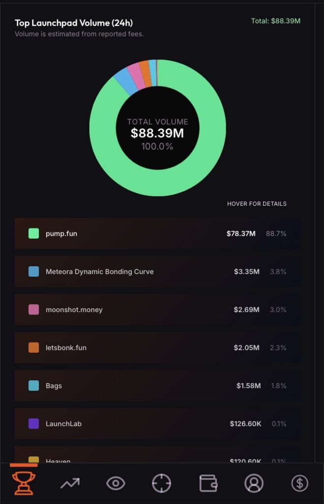 The more shots you take, the larger the surface area to score a “home run”. That’s true, but by offering traders (with whom trading styles may very) a way to keep track of the larger ecosystem with our dashboard tools like the daily launchpad teading volume, bonded tokens and even offering you a chance to view the following: